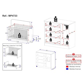 Dimensões do Produto Montado: Berço - Altura: 80,5cm | Largura: 133cm | Profundidade: 77,5cm Cômoda - Altura: 83cm | Largura: 95cm | Profundidade: 42cm *Você pode consultar as medidas detalhadas na imagem técnica do produto.