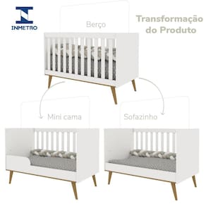 3 em 1: Berço + Mini Cama + Sofazinho multifuncional.