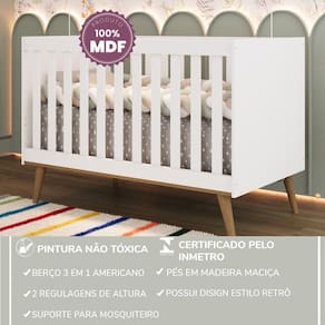 O Berço Retrô Americano 3 em 1 une beleza, segurança e praticidade perfeito para quem deseja um produto moderno, funcional e totalmente seguro para o bebê!