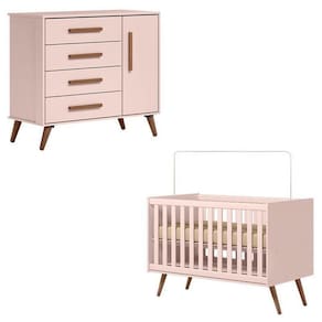 Berço Americano 3820 e Cômoda Infantil 3825 Retrô Rosa - Qmovi