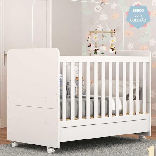 produto composto por: 1 berço, 1 colchão, manual de montagem e. kit ferragem.