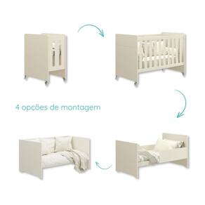 Sua transformação é simples e versátil: começa como mini berço, perfeito para os primeiros meses de vida, garantindo um sono seguro e confortável para o bebê. Depois, pode ser convertido em berço tradicional, oferecendo espaço e segurança conforme a criança cresce. Em seguida, o berço se transforma em um sofá, ideal para momentos de lazer e relaxamento. Por fim, ele pode ser convertido em uma caminha para crianças, proporcionando um local aconchegante e seguro para o descanso.