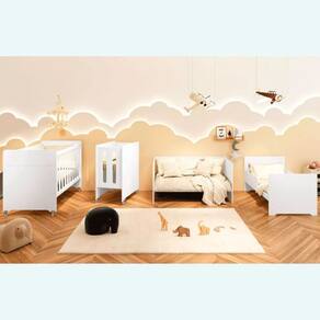 Sua transformação é simples e versátil: começa como mini berço, perfeito para os primeiros meses de vida, garantindo um sono seguro e confortável para o bebê. Depois, pode ser convertido em berço tradicional, oferecendo espaço e segurança conforme a criança cresce. Em seguida, o berço se transforma em um sofá, ideal para momentos de lazer e relaxamento. Por fim, ele pode ser convertido em uma caminha para crianças, proporcionando um local aconchegante e seguro para o descanso.