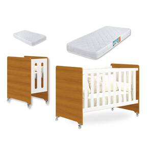 Berço Americano 4 em 1 Evolution Savana com 02 Colchões - Branco | Carvalho
