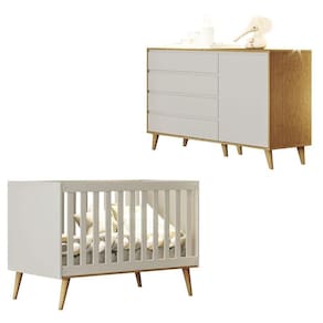 Berço Americano Ludmila e Cômoda Gran Lorena Off White Bétula – Carolina Baby