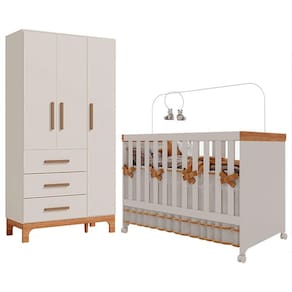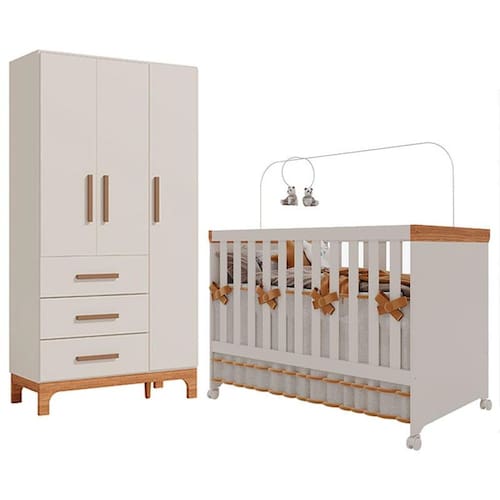 Berço Americano Antonella com Guarda Roupa Pega Pega 3 Portas Off White Caramelo - Canaã