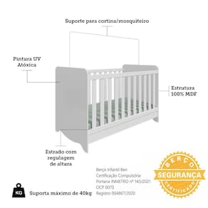 O Berço Americano Ben 3 em 1 é perfeito para acompanhar o crescimento do seu bebê com conforto e praticidade. Produzido em MDF com pintura UV atóxica, possui certificado do INMETRO, garantindo segurança para o uso diário. Seu design funcional permite uso como berço, mini cama ou mini sofá. Conta com 2 regulagens de altura do estrado, bordas arredondadas, grades fixas e suporte para mosquiteiro. Suporta até 40kg e é indicado para colchão 130x70 cm (não incluso). Uma escolha versátil, segura e cheia de charme para o quarto do bebê.