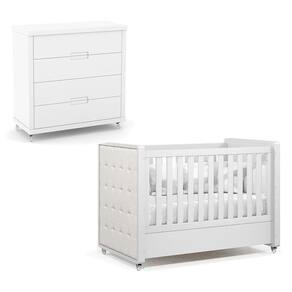 Berço Americano com Capitonê New Boucle e Cômoda Gaveteiro Infantil Tutto New Branco Acetinado - Matic