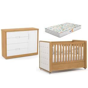 Berço Americano com Capitonê New Boucle e Cômoda Infantil Tutto New Freijó e Colchão Gazin - Matic