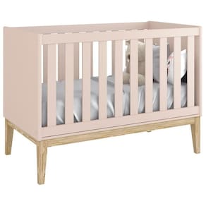 Berço Americano New Classic Rosa com Pés Madeira Natural – Reller