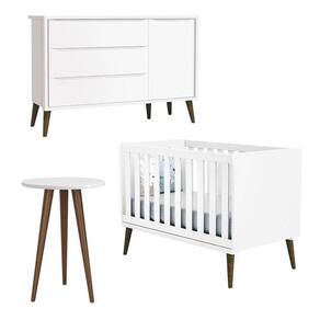 Berço Americano com Cômoda Sapateira Infantil e Mesa de Canto Theo Branco Pés Amadeirados - Reller