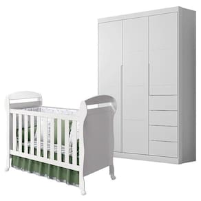 Berço Americano Danny e Guarda Roupa Infantil Eloá Branco Acetinado – Phoenix Baby