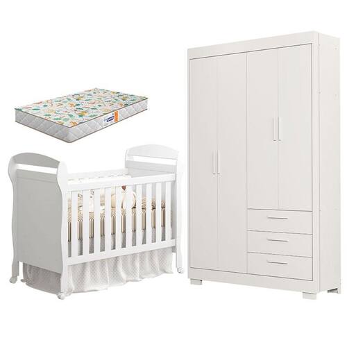 Berço Americano Danny e Guarda Roupa Infantil Zaki Branco Acetinado com Colchão Gazin - Reller