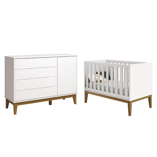 Berço Americano e Cômoda com Porta Classic Elfe Branco Acetinado com Pés Madeira - Reller