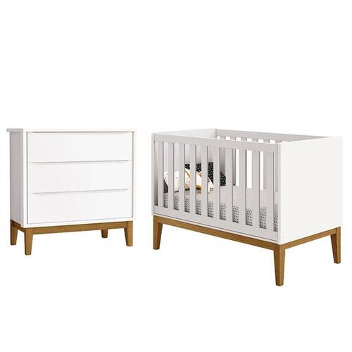 Berço Americano e Cômoda Gaveteiro New Classic Branco com Pés Madeira – Reller