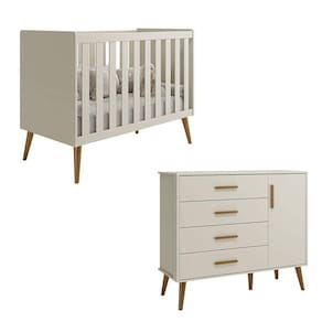 Berço Americano e Cômoda Infantil com Porta Isis Areia Acetinado - Reller