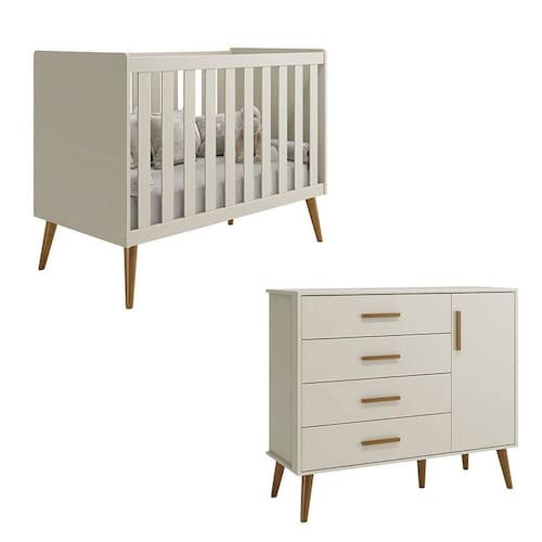 Berço Americano e Cômoda Infantil com Porta Isis Areia Acetinado - Reller