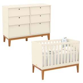 Berço Americano e Cômoda Sapateira Unique Off White Eco Wood - Matic