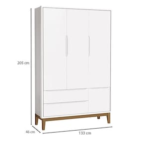 Guarda Roupa Infantil New Classic 3 Portas Branco com Pés Madeira – Reller