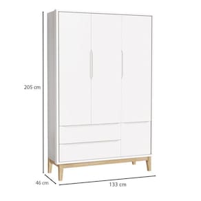 Guarda Roupa Infantil New Classic 3 Portas Branco com Pés Madeira Natural – Reller