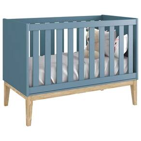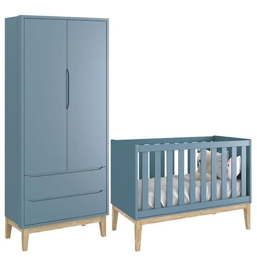 Berço Americano e Guarda Roupa Classic 2 Portas Azul com Pés Madeira Natural Reller