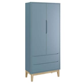 Guarda Roupa Infantil New Classic 2 Portas Azul com Pés Madeira Natural Reller