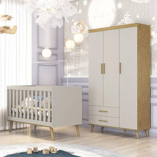 Berço Americano e Guarda Roupa Infantil Ludmila Off White Bétula - Carolina Baby