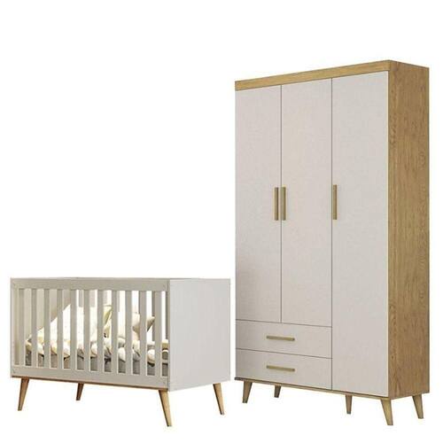 Berço Americano e Guarda Roupa Infantil Ludmila Off White Bétula - Carolina Baby