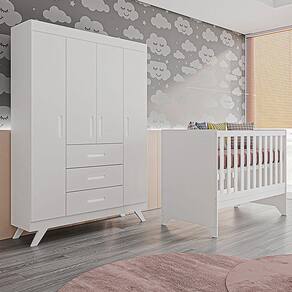 Berço Americano e Guarda Roupa Retro Maya Branco Acetinado – Canaã