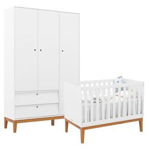 Berço Americano e Guarda Roupa Unique 3 Portas Branco Soft Eco Wood - Matic