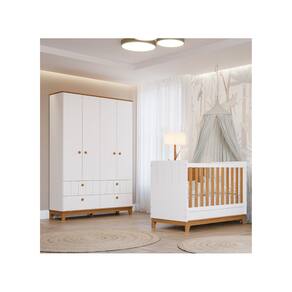 Berço padrão americano fabricado em MDF, com 02 regulagens na altura do estrado, grades fixas, detalhes em baixo relevo com pintura Laca;