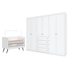 Berço Americano Q Encanto 3820 Retrô Branco Acetinado - Qmovi e Guarda Roupa Casal Americano 6 Portas Branco HP - Henn