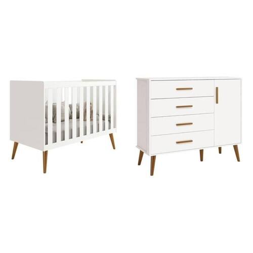 O Berço Isis é uma excelente opção pra quem procura por qualidade, beleza e praticidade. Seus pés retro em madeira dão charme e elegância ao produto, possui 3 posições de estrado, acompanha suporte para mosquiteiro e ainda se transforma em uma linda mini cama. Colchão não incluso A cômoda Isis é uma excelente opção pra quem procura por qualidade, beleza e praticidade. Seus pés retro em madeira dão charme e elegância ao produto. Possui 4 gavetas espaçosas, uma sapateira com prateleira, corrediças telescópicas e puxadores em madeira. Marca: Móveis Reller