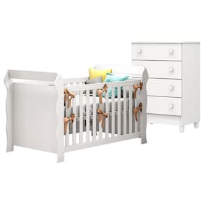 Berço Americano Lara com Cômoda Gaveteiro Mel Flat Branco Brilho – Carolina