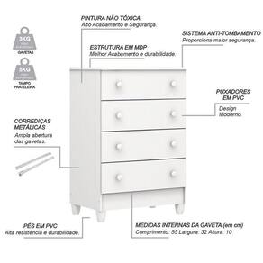 Cômoda Gaveteiro Mel Flat Branco Brilho - Carolina