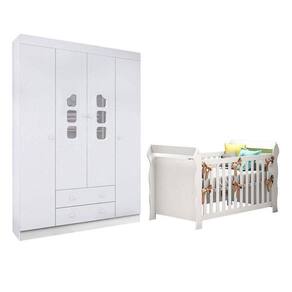 Berço Americano Lara e Guarda Roupa Infantil Lívia Branco Brilho Phoenix
