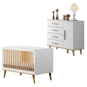 Berço Americano Ligia e Cômoda Ludmila Branco Acetinado Bétula - Carolina Móveis