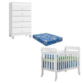 Berço Americano Lila com Colchão para Berço Americano e Cômoda Gaveteiro Ternura Baby Branco Brilho - Incorplac