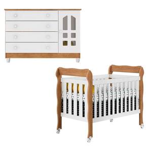 Berço Americano Lila e Cômoda Gran Selena Branco Acetinado Amadeirado - Carolina