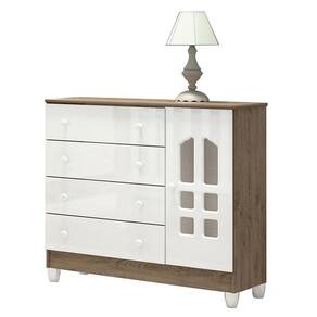 Berço Americano Lila e Cômoda Infantil Selena Branco Acetinado Amadeirado – Carolina