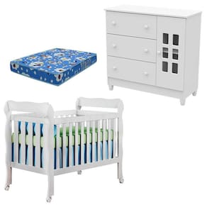 Berço Americano Lila e Cômoda Mariah Branco Brilho com Colchão - Carolina