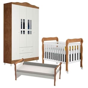 Berço Americano Lila Guarda Roupa Ariel 4 Portas e Cama Babá Julia Branco Acetinado Amadeirado - Carolina