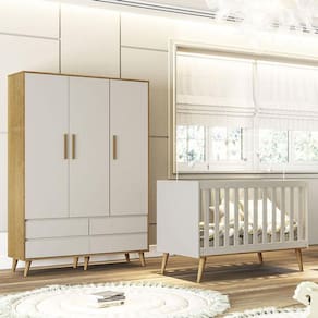 Berço Americano Ludmila e Guarda Roupa Infantil Lorena 3 Portas Off White Bétula - Carolina Baby