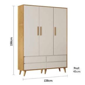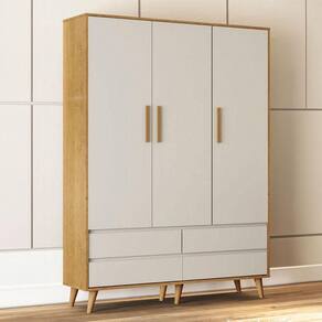 Guarda Roupa Infantil Lorena 3 Portas Off White Bétula - Carolina Baby