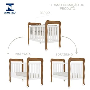 Berço 3 em 1: berço, mini cama e sofazinho.