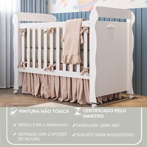 Modelo Mini Cama Americano, ideal para acompanhar o desenvolvimento do bebê.