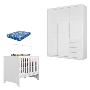 Berço Americano Maya e Guarda Roupa Infantil Blenda Branco Acetinado com Colchão Ortobom - Phoenix Baby