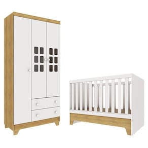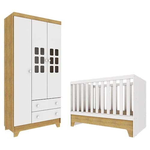 Berço Americano Mini Cama com Guarda Roupa Infantil Malu Branco Acetinado Bétula – Carolina
