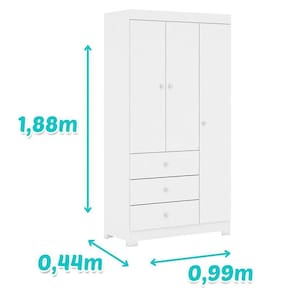 Guarda Roupa Infantil Duda 3 Portas Branco Brilho – Phoenix Baby