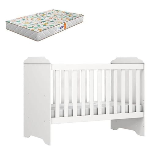 Berço Americano Mini Cama Mel Branco Brilho com Colchão Gazin - Carolina